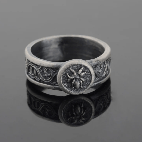 Handmade Men's Spider Band Ring—Featuring a Lily Motif in Silver, Ideal as an Animal-Inspired Wedding Signet Ring.
